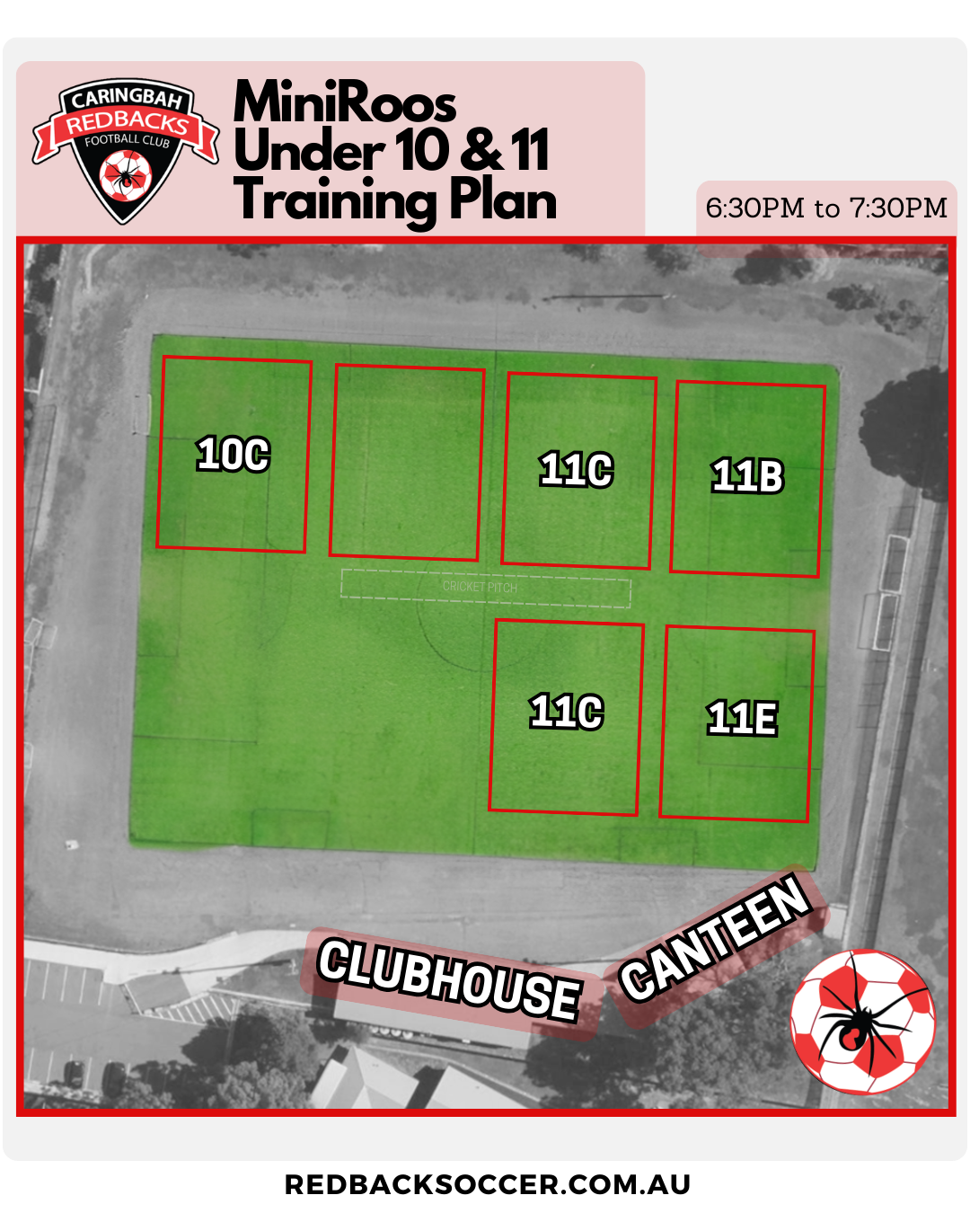 Thanks to all our coaches, managers and families for helping make Friday MiniRoos training a fun and organised environment for our young Redbacks.